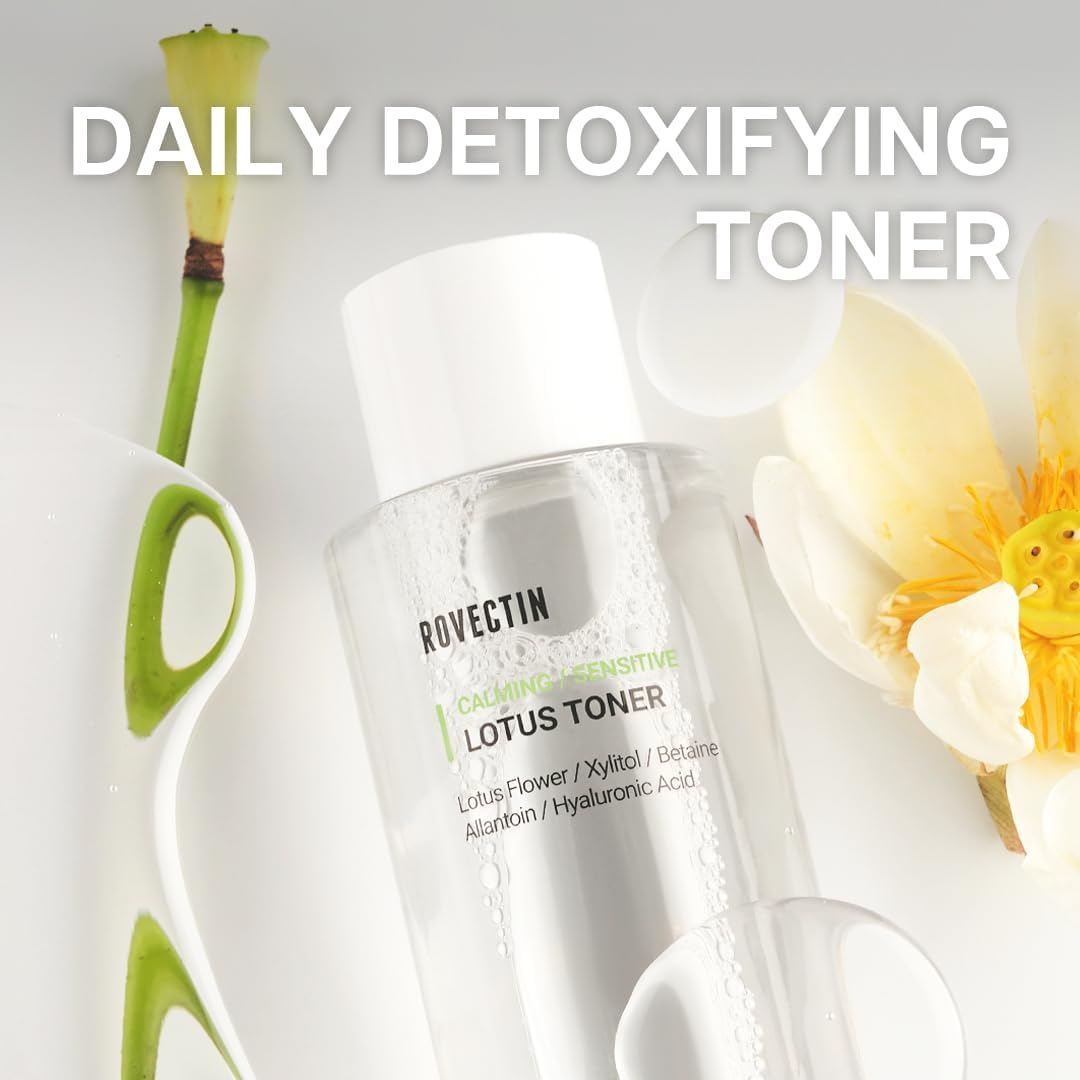 ROVECTIN Lotus Water Calming Toner is a gentle, hydrating toner that features Lotus Flower Water to soothe and refresh the skin. Enriched with Hyaluronic Acid in various forms, it provides deep hydration, while Xylitol and Allantoin help calm and nourish. This lightweight toner balances the skin’s moisture levels, leaving it feeling smooth and revitalized. Ideal for sensitive and dry skin.