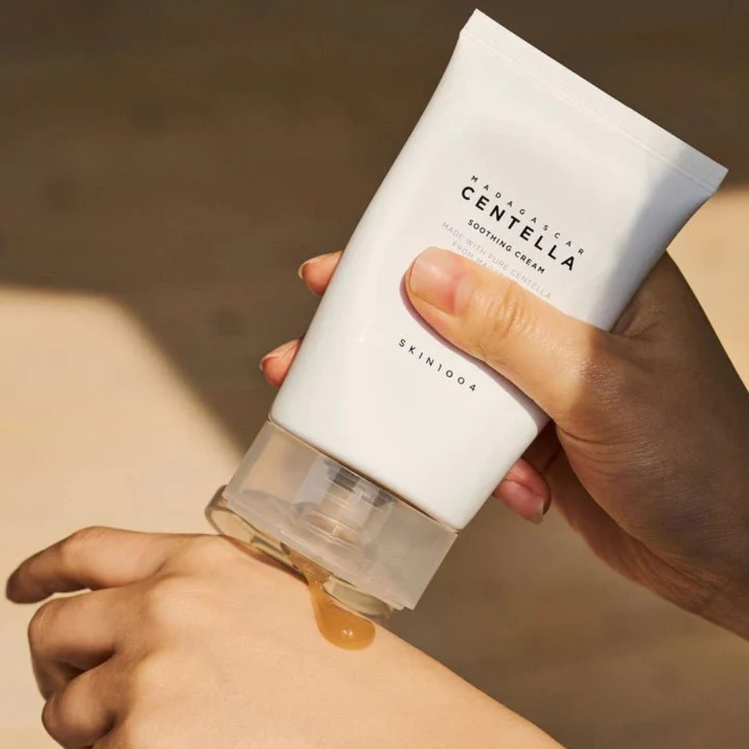 SKIN1004 Madagascar Centella Soothing Cream is a calming and hydrating cream formulated with 72% Centella Asiatica Extract to soothe irritated and sensitive skin. Enriched with Ceramides and Sodium Hyaluronate, it helps strengthen the skin barrier, retain moisture, and promote long-lasting hydration. The addition of Peppermint Leaf Extract and Ginger Root Extract provides a cooling and refreshing effect, while Tranexamic Acid helps brighten the skin. This lightweight cream absorbs quickly, leaving the skin smooth, balanced, and deeply nourished. Suitable for all skin types, especially sensitive and irritated skin.