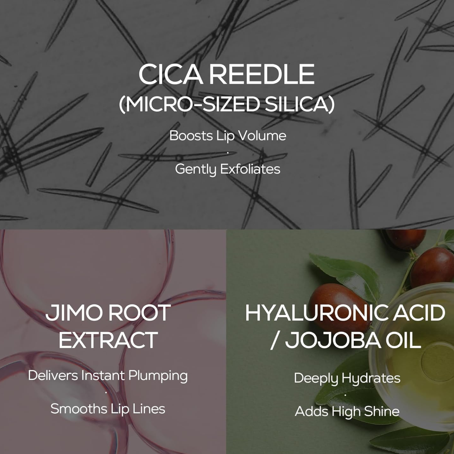 VT Reedle Shot Lip Plumper Expert is an advanced lip plumper designed to create visibly fuller, smoother, and more hydrated lips. The formula delivers an instant plumping effect with a lightweight, non-sticky shine. Infused with Sodium Hyaluronate, Jojoba Oil, and Tocopheryl Acetate (Vitamin E), it deeply hydrates while softening dry or rough lips. VT’s signature CICA Reedle™ technology helps gently smooth lip texture and improve the absorption of plumping ingredients. Enriched with Centella Asiatica Extract and Propolis Extract, it also helps soothe and nourish the lips while enhancing volume. Ideal for those seeking fuller-looking lips with hydration and shine.