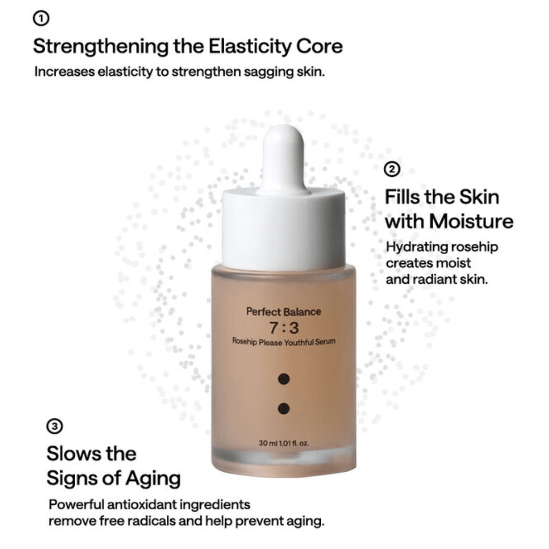 B-LAB Rosehip Please Youthful Serum contains Rosa Canina Fruit Juice, known for its anti-aging properties. It features ingredients like Niacinamide and Hyaluronic Acid, which enhance skin elasticity, reduce wrinkles, and deeply hydrate. Antioxidant-rich fruit extracts help protect and rejuvenate the skin, promoting a youthful complexion. Suitable for all skin types.