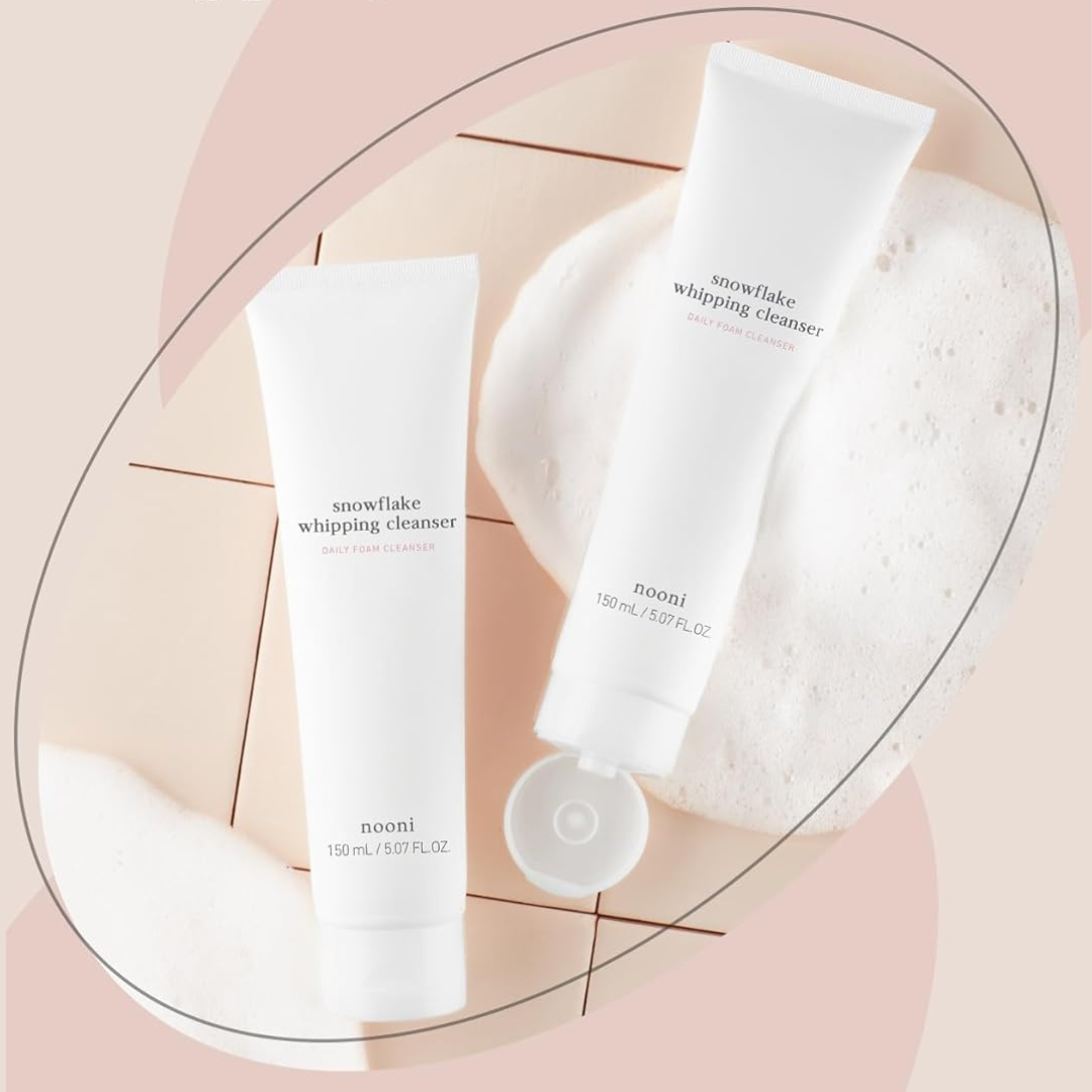 NOONI Snowflake Whipping Cleanser is a rich foaming cleanser that gently removes impurities and makeup while keeping the skin soft and hydrated. Formulated with soothing ingredients like Althaea Officinalis Root Extract and Saussurea Involucrata Extract, it calms and nourishes the skin. The creamy, whipped texture provides a thorough yet gentle cleanse, with Kaolin helping to purify and balance oil levels. Infused with a blend of floral extracts such as Rose, Jasmine, and Lily, it revitalizes the skin, leaving it feeling refreshed and radiant. Suitable for all skin types, this cleanser ensures a smooth, clean complexion without stripping moisture.