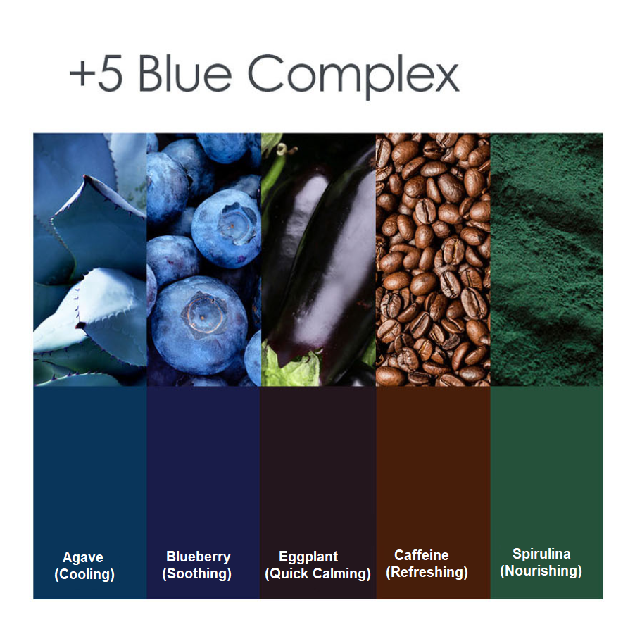 Water, Glycerin, Calcium Chloride, Ceratonia Siliqua (Carob) Gum, Xanthan Gum, Butylene Glycol, Butyrospermum Parkii (Shea) Butter, Ethyl Hexanediol, PEG-60 Hydrogenated Castor Oil, Citrus Grandis (Grapefruit) Seed Extract, Bambusa Textilis Stem Extract, Pinus Palustris Leaf Extract, Phenoxyethanol, Scutellaria Baicalensis Root Extract, Camellia Sinensis Leaf Extract, Houttuynia Cordata Extract, Artemisia Princeps Leaf Extract, Citrus Junos Fruit Extract, 1,2-Hexanediol, Caprylyl Glycol, Chondrus Crispus Powder, Synthetic Fluorphlogopite, Tin Oxide (CI 77861), Titanium Dioxide (CI 77891), Ferric Ferrocyanide (CI 77510), CI 77491, CI 77007, Chlorphenesin, Ethylhexylglycerin, Laminaria Japonica Extract, Macrocystis Pyrifera Extract, Enteromorpha Compressa Extract, Sargassum Fulvellum Extract, Spirulina Platensis Extract, Hizikia Fusiforme Extract, Codium Fragile Extract, Vaccinium Angustifolium (Blueberry) Fruit Extract, Solanum Melongena (Eggplant) Fruit Extract, Agave Americana Leaf Extract, Hydroxyethylcellulose, Disodium EDTA, Caffeine, Sapphire Powder, Fragrance.
